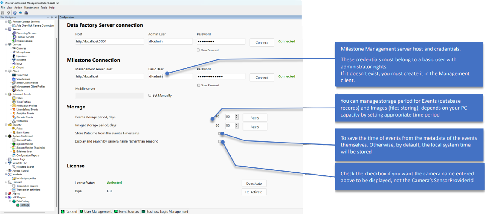 Please ensure that a Basic user has been created in Milestone > Security Tab and that the Administrator role has been assigned to this user.