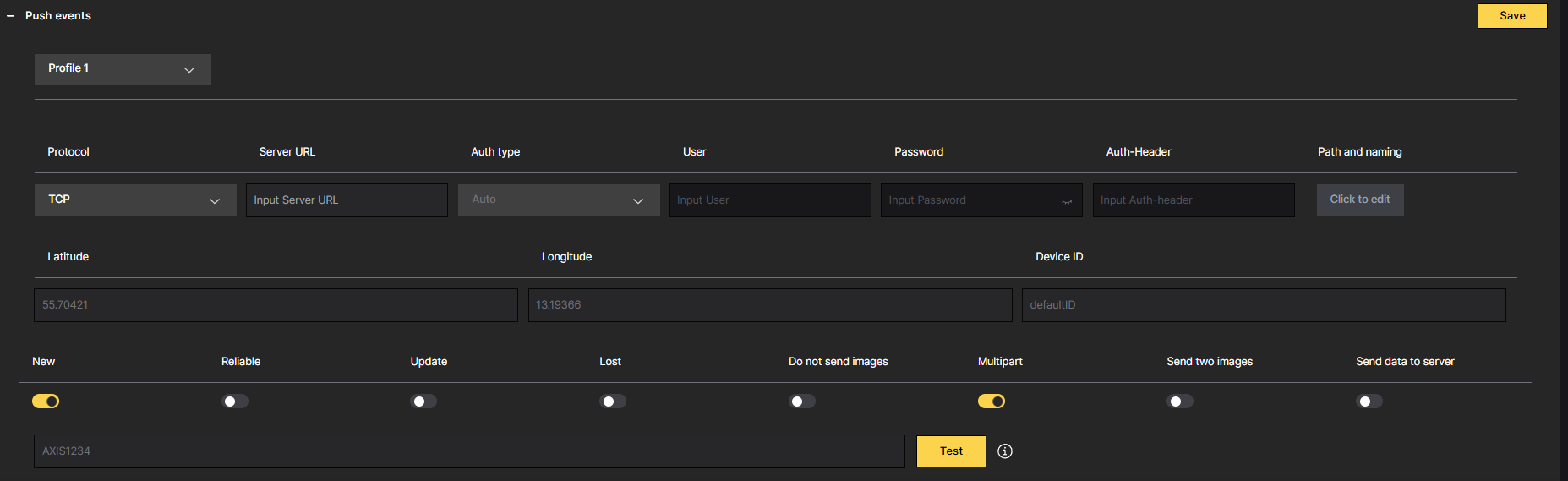 Configure Server URL: Specify the link or URL where you want to send the data. This could be the endpoint of the receiving application or system. You can explicitly define URL starting with HTTP (ex. “http://ip:port/listener.php”) in case camera Network configuration allows both, HTTP and HTTPS, but your server is only configured to use HTTP.